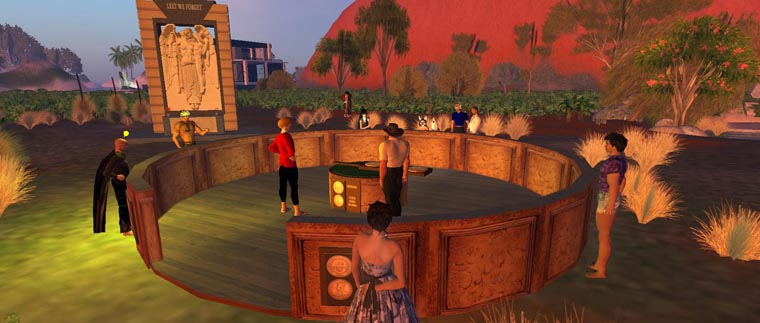 After the Anzac Service, calls went up for a game of Two up. The Dingo team thought this was a splendid idea, and retreated to the dingo lair to build SLs first game of two up, which was played for hours out the back of the Billabong bar that evening. Pants made a fabulous Boxer, and many Lindend were won by lucky spinners. Of course, being in SL we could not place bets, merely pay for winners, but the true spirit of the game was eveident as the onlookers joined in the calls and jostled for a chance to be spinner. All in the shadow of a new memorial for the Anzacs - it was a very Australian experience.